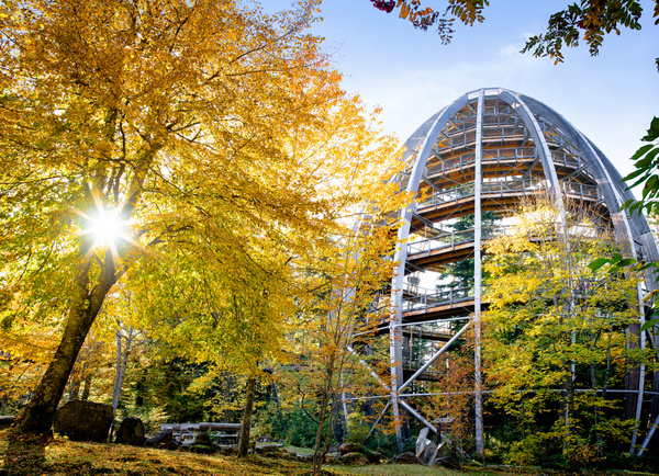 Im Nationalparkzentrum Lusen bei Neuschönau sorgt der Baumwipfelpfad Bayerischer Wald zur goldenen Herbstzeit für weite Ausblicke über den bunten Wald. Der Pfad erstreckt sich auf einer Länge von rund 1.300 Metern und befindet sich in luftiger Höhe von bis zu 25 Metern. Auf dem Weg vermitteln zahlreiche Lern- und Erlebnisstationen Wissen über das Ökosystem Wald. Veranstaltungen wie „Abendführung: Vollmondnacht im Reich der Eulen“ oder „Kürbissuche auf dem Baumwipfelpfad“ locken ebenfalls in die Natur und sorgen für stimmungsvolles Outdoor-Vergnügen.