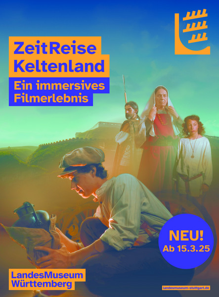 Ab 15. März 2025 zeigt das Landesmuseum Württemberg in einem Turmraum in der Schausammlung „LegendäreMeisterWerke“ die Präsentation „ZeitReise Keltenland. Ein immersives Filmerlebnis“. Die 260° umfassende Multimediaprojektion von sieben Kurzfilmen zur Lebenswelt der Kelten führt zu den bedeutendsten „Keltenorten“ des Landes. Mit der „ZeitReise Keltenland“ geht das Landesmuseum Württemberg neue Wege in der Kulturvermittlung und ermöglicht dem Publikum einen emotionalen und sinnlichen Zugang zu kulturgeschichtlichen Inhalten.