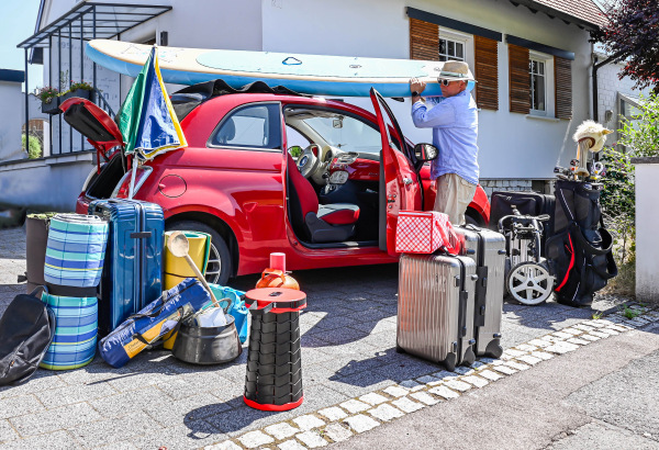 Bevor der Traumurlaub beginnen kann, muss gepackt werden. Bei der Frage, was die Familie im Urlaub unbedingt braucht, scheiden sich oft die Geister. Aber egal, welche Dinge im Auto landen, um sicher anzukommen, gilt es beim Verstauen des Gepäcks ein paar Dinge zu beherzigen. Schwere und sperrige Gegenstände gehören immer in den Kofferraum: Am besten gelagert werden sie vor oder direkt auf der Hinterachse. In Kombis und SUVs dürfen Gepäckstücke nicht über die Höhe der Rückbank hinaus gestapelt werden. Nur mit einem Trenngitter oder Trennnetz im Auto ist höheres Beladen kein Problem.