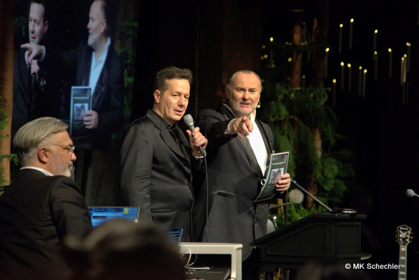 Bei der Versteigerung ganz in ihrem Element: Parodist Jörg Hammerschmidt (links), Zoltán I. Bagaméry, Präsident KIWANIS Stuttgart rechts). Im Vordergrund: Musik-Entertainer Vladimir Burkhardt