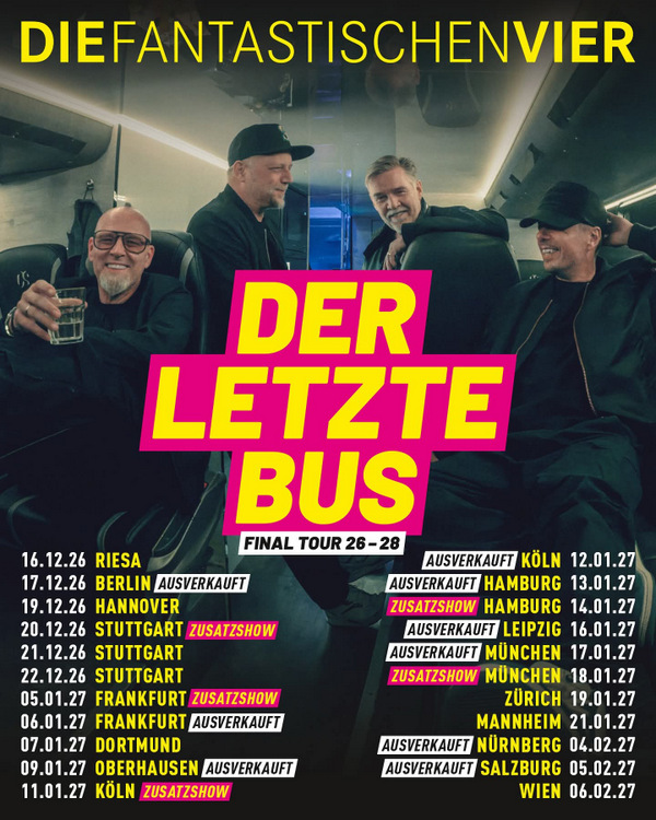 Der Vorverkaufsstart ihrer Abschiedstour „Der letzte Bus“ war ein Raketenstart: über 100.000 Tickets in nur 30 Minuten. Jetzt gibt’s die Belohnung für alle, die leer ausgegangen sind: Eine Zusatzshow in der Hanns-Martin-Schleyer-Halle!