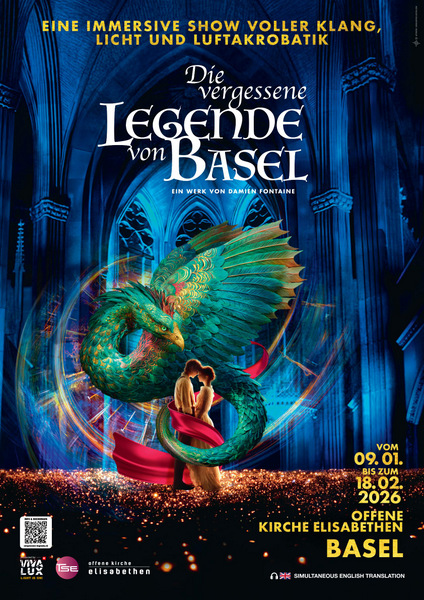 Vom 9. Januar bis 18. Februar 2026 verwandelt sich die neugotische Elisabethenkirche mitten in Basel in eine Bühne der besonderen Art: Regisseur Damien Fontaine, international bekannt für seine monumentalen Multimedia-Inszenierungen, bringt mit Die vergessene Legende von Basel ein Gesamtkunstwerk aus Projektionen, Musik und Luftakrobatik in die Stadt.