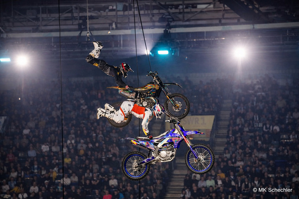 Für zusätzliche Überraschungen sorgte Maskottchen Skullbunny. Im „Future Fire“-Segment enterte er gemeinsam mit den Kids die Ramps und setzte mit einem massiven, völlig unerwarteten Backflip noch einen drauf. Für einen kurzen Moment war er selbst der Star der Show. Ein weiteres Novum: Erstmals flog eine Harley bei Masters of Dirt durch die Luft. Wer hinter dem Lenker saß, bleibt ein gut gehütetes Geheimnis. Eingebettet war dieser spektakuläre Part in das neue Motörhead-Segment mit Firebikes, Live-Drummern und den Fuel Girls. Feuer, Motorensound und Rock-Elemente verschmolzen zu einer eindrucksvollen Inszenierung.