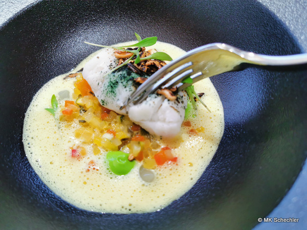 Das sieht klasse aus und schmeckt. Dirk Hoberg (2 Sterne) kredenzt: Seeteufel / Ratatouille / Thai Curry