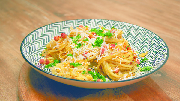 Kartoffel-Spaghetti Carbonara: Klassiker neu interpretiert