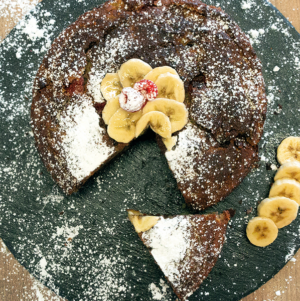 Der Tag der Kartoffel am 19. August lässt sich gut mit einem Kuchen aus Kartoffeln, Bananen, Himbeeren und Schokolade feiern. Quelle: KMG/die-kartoffel.de